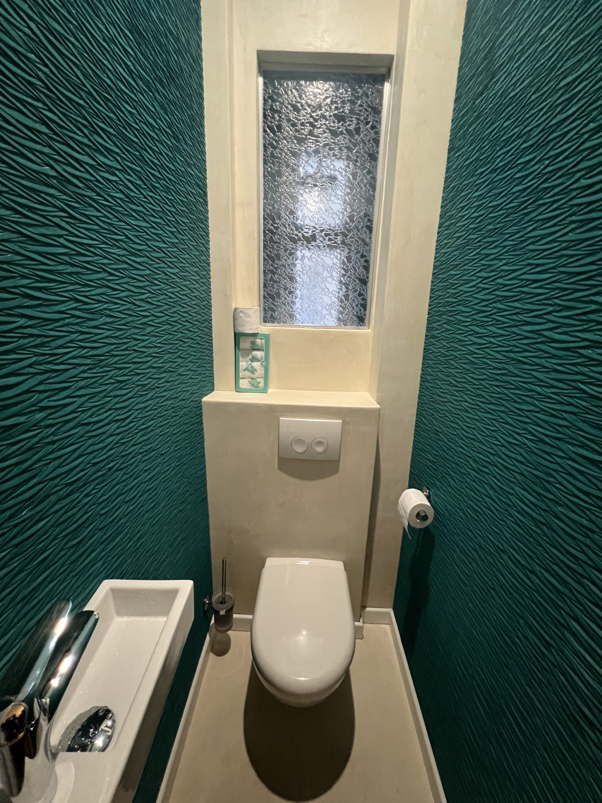 - la réalisation de A à Z de toute la partie plomberie et électricité pour ces toilettes et cette douche. Les deux espaces étant vierges, nous avons du concevoir ces nouvelles pièces à partir de zéro