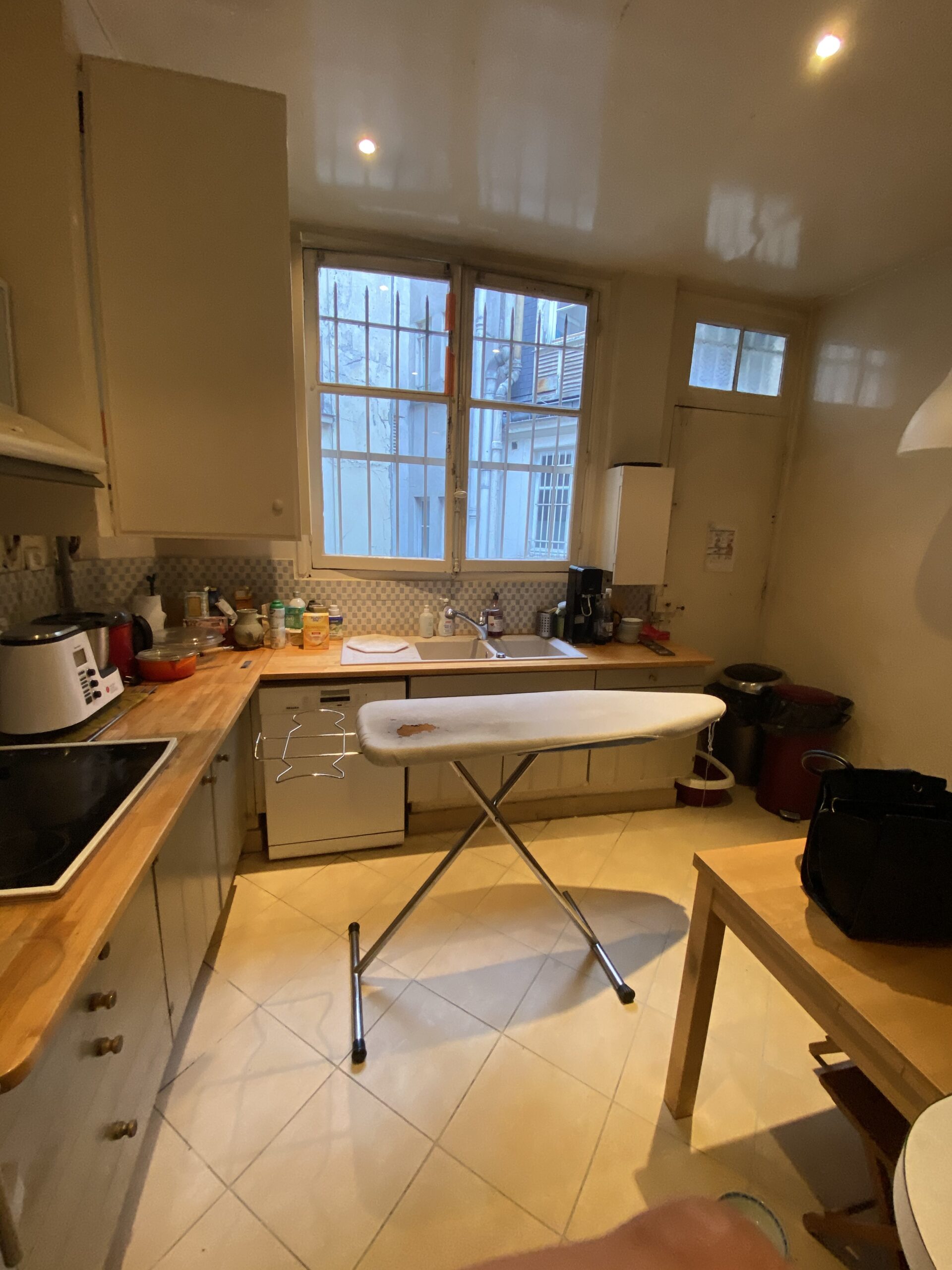 Cette grande cuisine de caractère a été rénovée en utilisant des meubles du commerce auquel nos équipes ont apporté de nombreuses modifications sur les caissons et les façades afin de personnaliser cette pièce incontournable de l’appartement tout en proposant un budget raisonnable si on compare à la création d’une cuisine sur mesure.