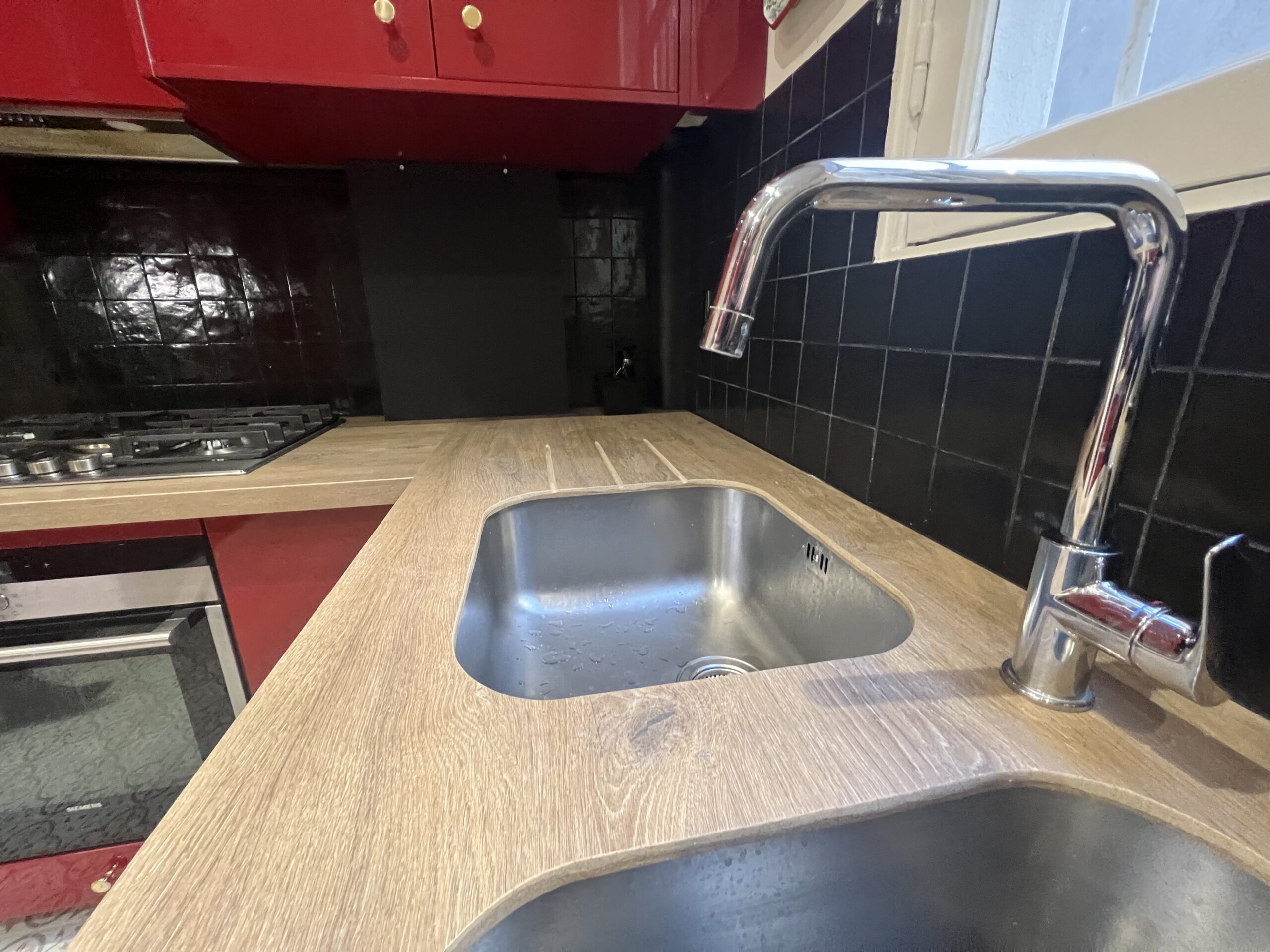 - plan de travail céramique grand format imitation chêne massif